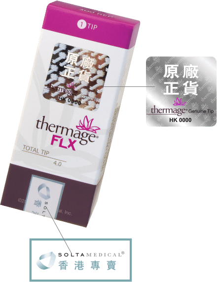 MEDILASE所使用的Thermage FLX包裝盒上均貼有